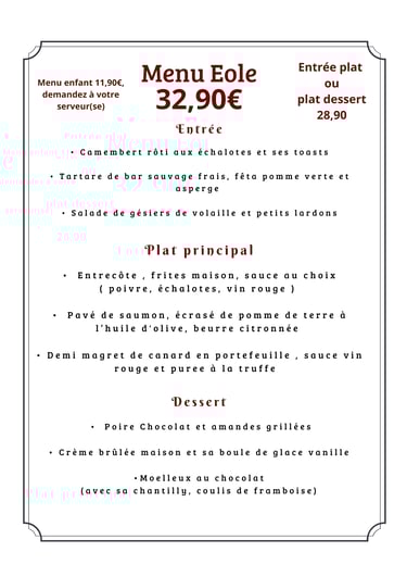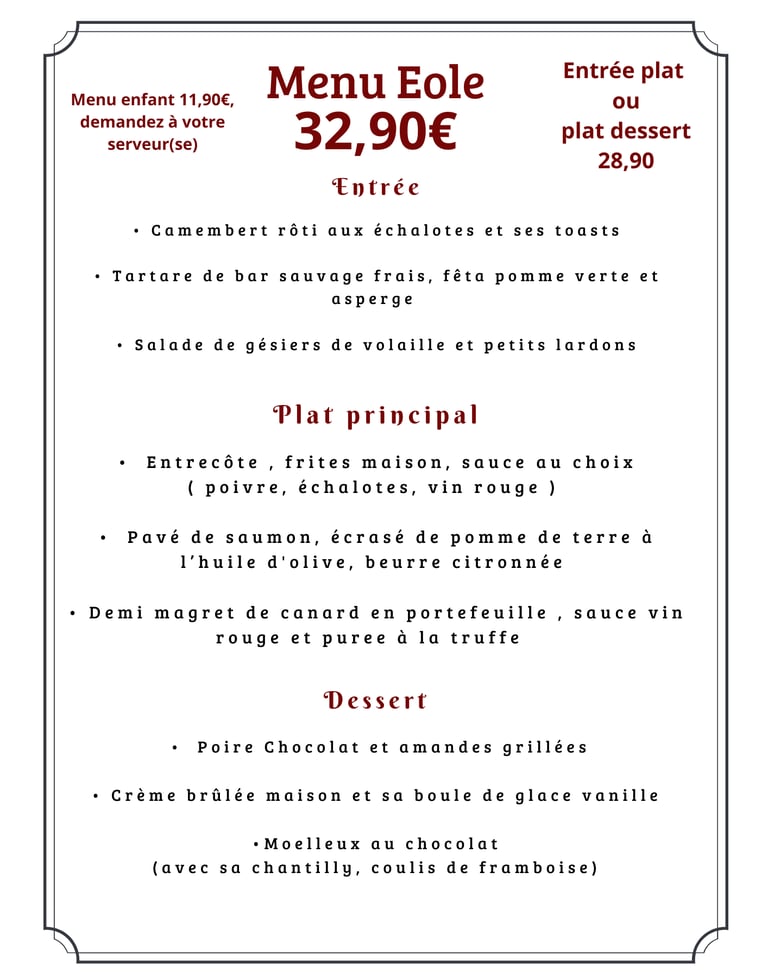 Découvrez nos menus