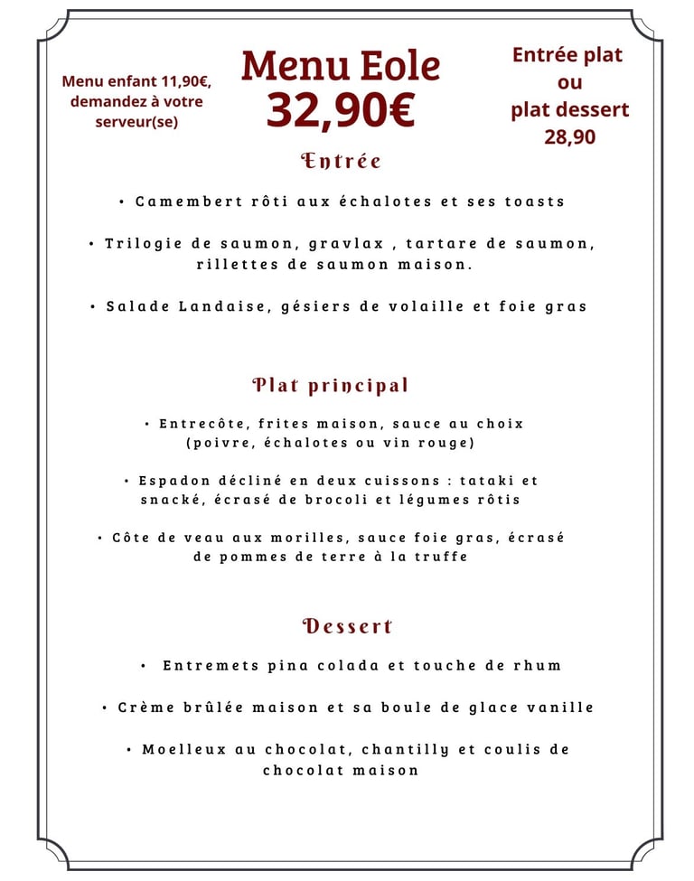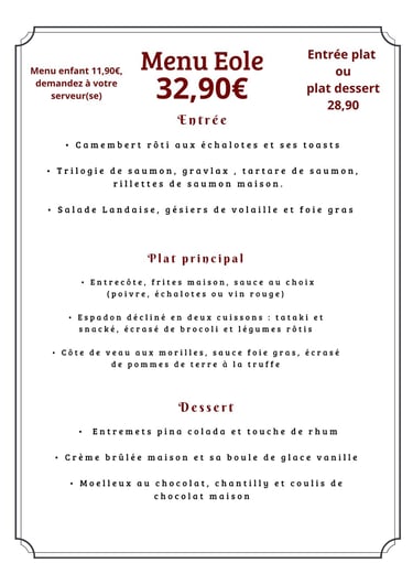 Découvrez nos menus